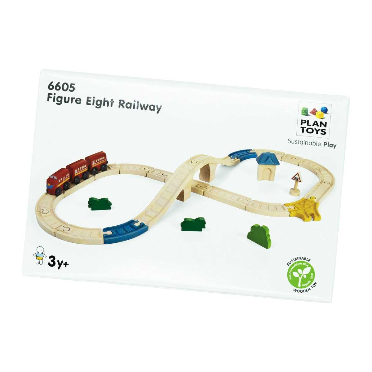 Bygg en åtta med den här fina järnvägen. Bitarna är dubbelsidiga och kan vändas för att bygga en bilväg på andra sidan. 29 delar inklusive en rolig bro som tåget kan åka under.