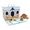 Öppna upp väskan och en hel värld öppnar upp sig. Låt fantasin flöda och hitta på upptåg med de tillhörande träfigurerna.