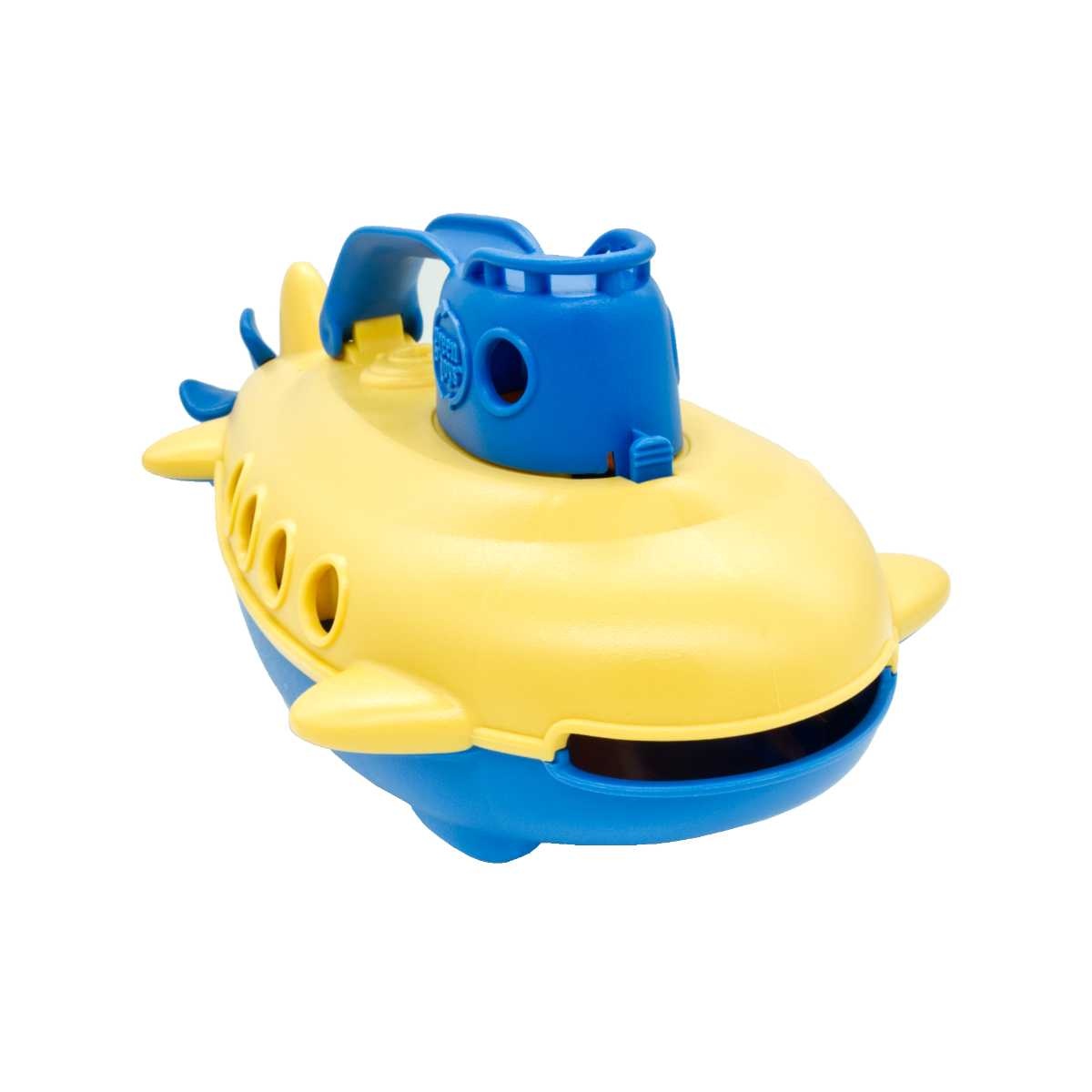 En superkul badleksak i form av en ubåt. Den har handtag och en öppning längst fram som gör att den kan användas för att skopa upp vatten. Propellern snurrar och du kan lyfta av toppen för att rengöra den enklare.