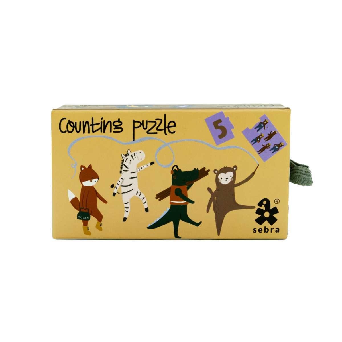 10 pussel med två bitar i varje pussel. Matcha siffran med rätt antal djur.