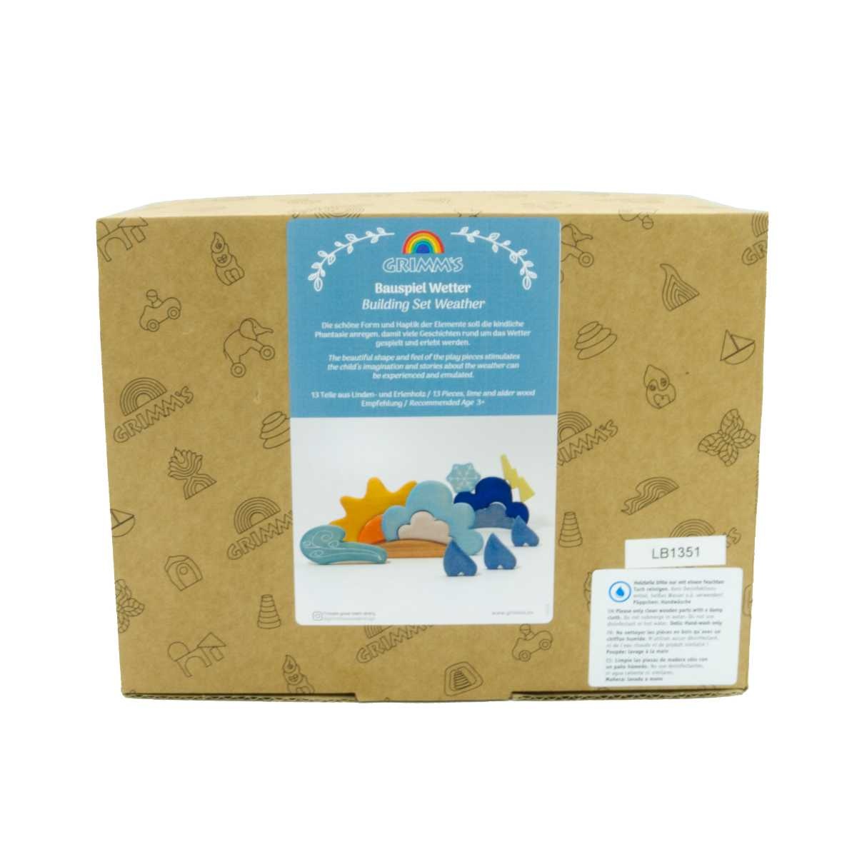 Här får barnen bygga ihop sitt eget väder, kanske återspeglar bygget barnets humör? Kanske vädret från sommarlovet eller den där roliga dagen med alla vattenpölar? Lika vackert som tåligt är detta träset från Grimms som passar perfekt som introduktion om väder och allt som hör där till.