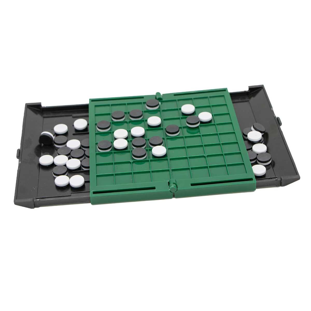 Othello är en riktig klassiker! Så simpelt konstruerat men konstant spännande. Här har vi en tamedsig-variant i mindre format med spelplan och ask i ett.