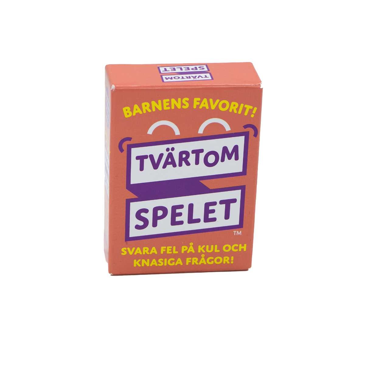 Tvärtom spelet är ett kul spel som snabbt blir barnens favorit. I bilen, med kompisar, på resan eller hemma i soffan. Här gäller det att snabbt försöka svara fel, alltså tvärtom, på knasiga och kul frågor. Svara ja istället för nej och nej istället för ja. Var beredd på roliga felsägningar och massvis av skratt.