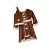 En mysig pepparkaksklänning i brunt med vit dekor med tillhörande luva. Sammetsliknande material.