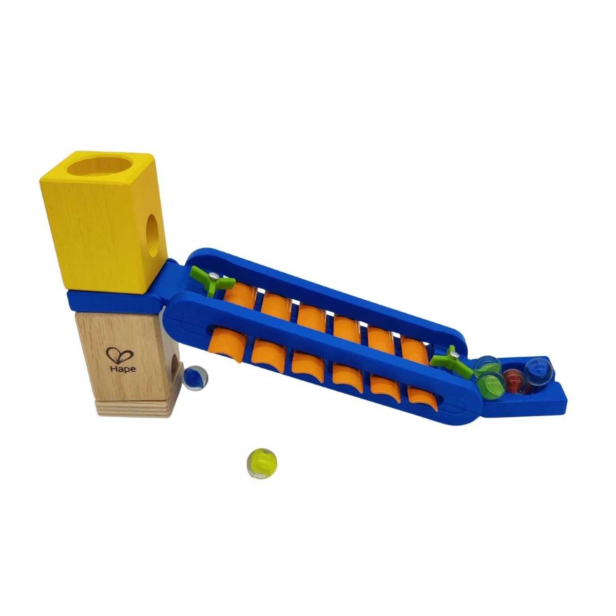 En skojig mindre variant av kulbana där kulorna rullar nedför en xylofon och ger ifrån sig olika ljud. Går att använda separat eller kan kombineras med (våra) andra kulbanor från Hape.