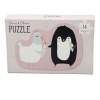 Litet gulligt parpussel med motiv av en pingvin och en duva. Totalt 14 bitar, 7 par.