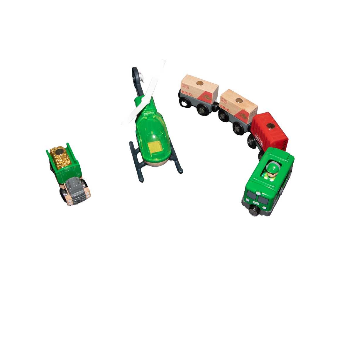 Frakt- och bergsset tar leken till extrema höjder med kranar och transporter i fem höjdnivåer – från helikopterplattan till de mörka grottorna djupt ned i bergen. Var och en av de stora bergsdelarna har anpassningsbara lekfunktioner och kan modifieras för att skapa tågbanor med olika höjder, färdvägar och funktioner. Använd de pålitliga maskinerna – bland annat en helikopter, ett godståg med vagnar och en lastbil – för att köra omkring och sköta denna riskfyllda arbetsplats.