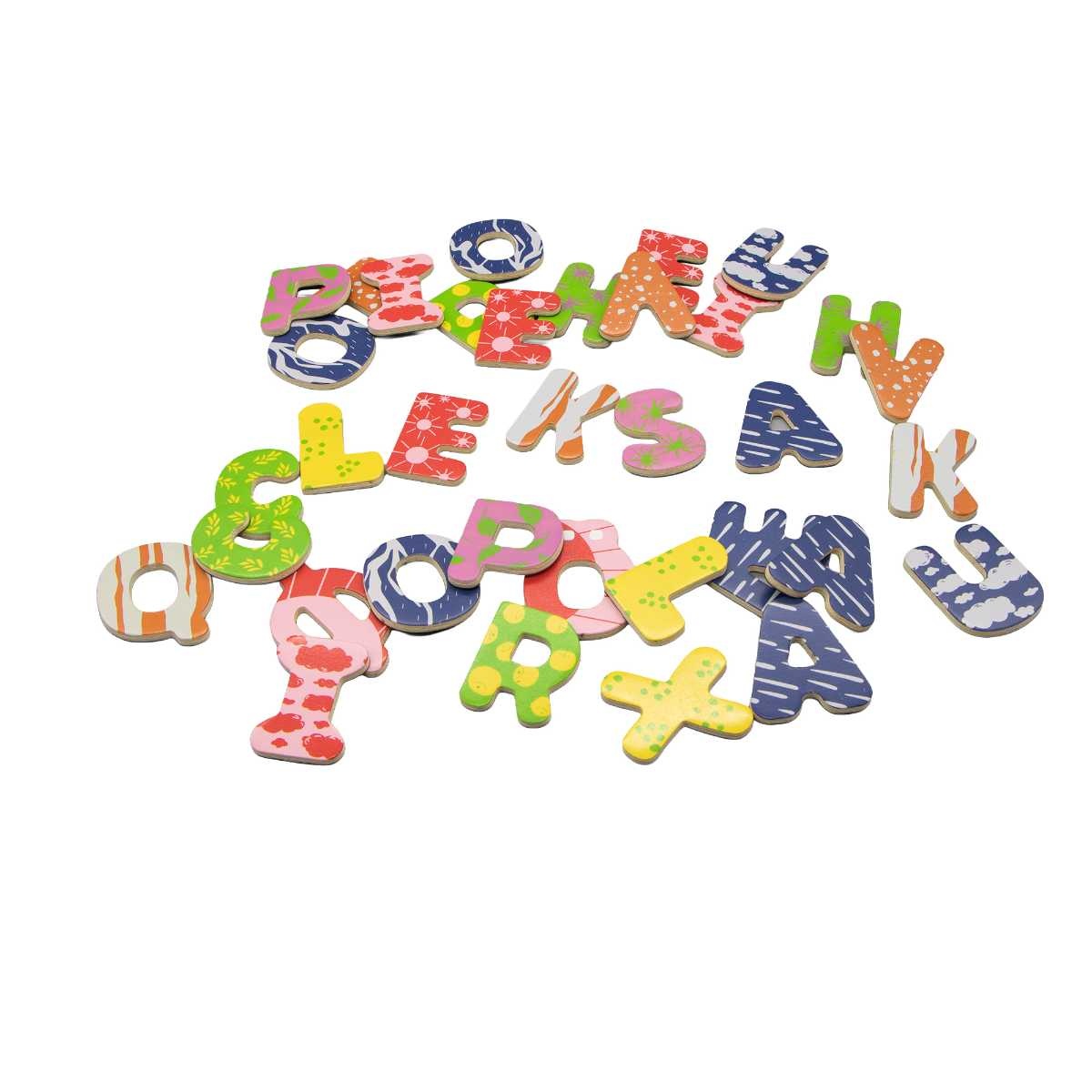 Träna på alfabetet och att sätta ihop ord med de här härliga magnetiska träbokstäverna. Bokstäverna har olika glada mönster och är ungefär 3-4 cm höga. Innehåller Å, Ä och Ö. På baksidan av kartongen finns tips om hur en kan använda sig av bokstäverna.