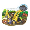 Ett stort pussel med stora härliga bitar. Motivet är en byggarbetsplats och ytterkanterna är också formade efter motivet.
