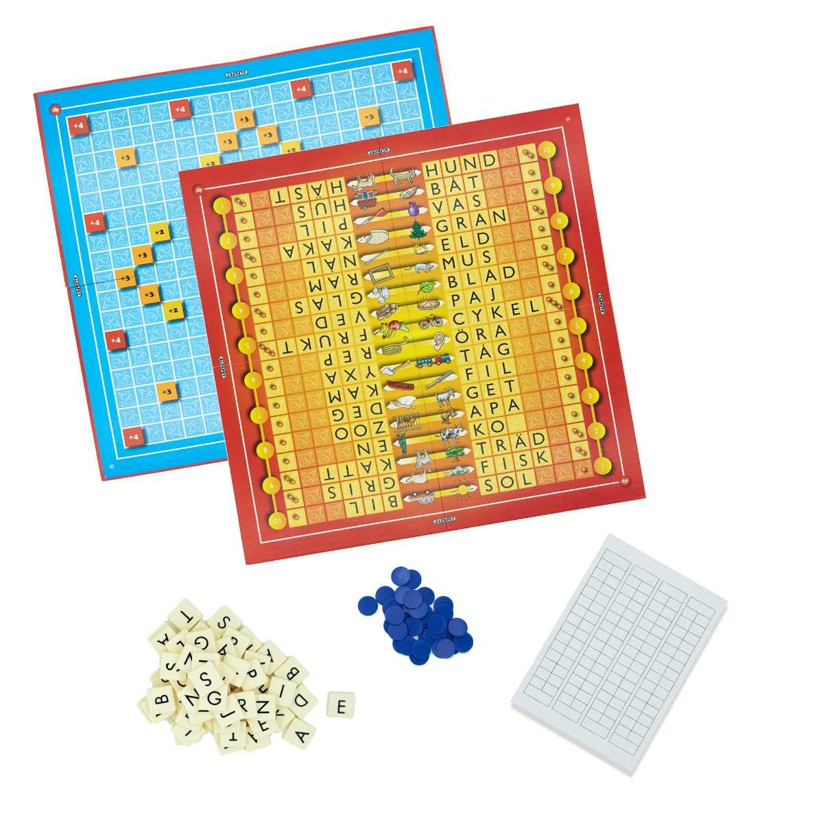 Barnens Alfapet innehåller två spännande spelvarianter. Ett roligt bokstavsspel och ett lite mer utmanande korsordsspel – på varsin sida av den dubbelsidiga spelplanen. Två busiga och lärande spel att växa med. Bokstavskul för hela familjen!