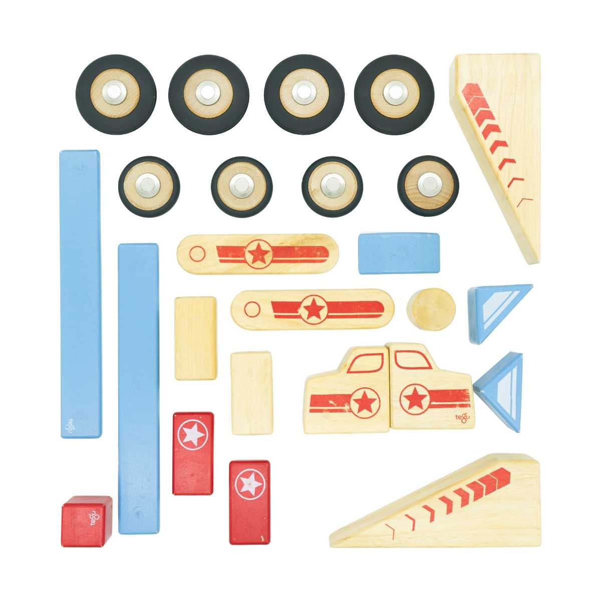 Ekologiska magnetiska träklossar, samtliga delar är giftfria. Upptäck bygglädjen och kreativiteten men dessa fantastiska klossar. Denna påse innehåller delar som går att bygga bilar/lastbilar av.